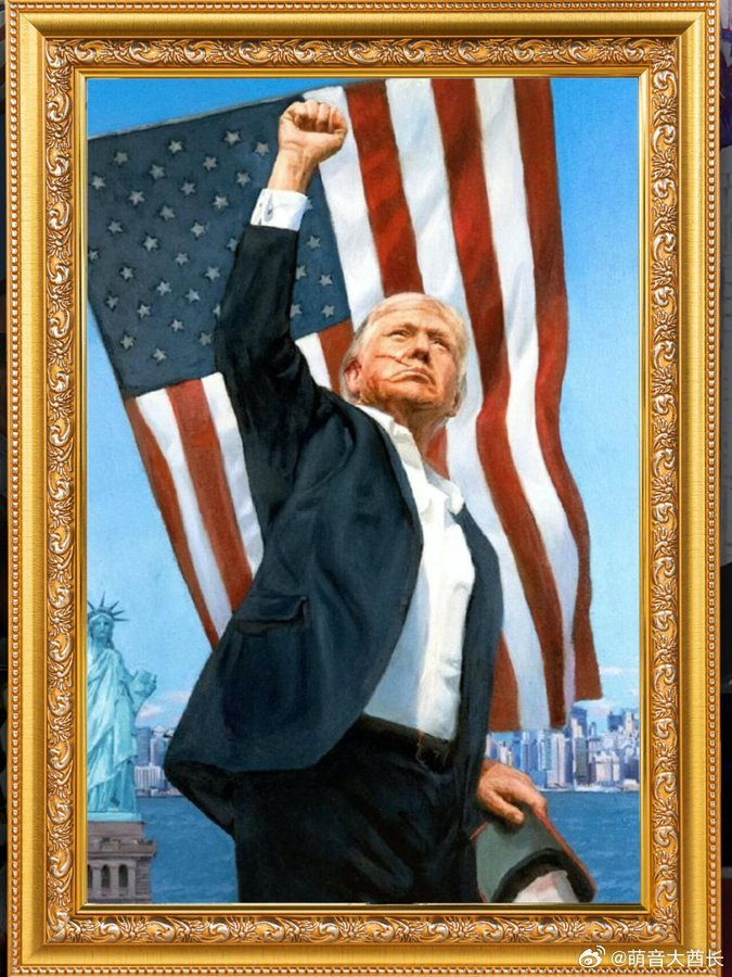 普京的“入场券”?一幅特朗普在2024年集会刺杀未遂事件中挥拳肖像。