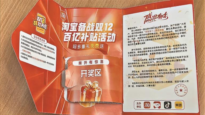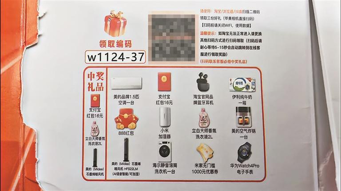 无独有偶,网友李先生也遇到了类似遭遇。“前两天收到短信提示:蜂巢凭取件码40400110至**一楼大堂蜂巢柜取件,后面还有一个链接。因为我和家人平时很少网购,起初我就认为这是诈骗短信,并没理睬。后来我担心是业务往来文件就去取了,但因为在快递柜中寄存超出了免费时限,还因此支付了寄存费。结果打开快递后发现,里面竟然是一小包儿童湿巾,还有一张几个电商平台联合推出的双12补贴活动’的抽奖卡,撕开开奖区可扫码抽奖。”李先生告诉记者,这个快递是从浙江省金华市金东区环城路93号邮寄过来的。“如今,但凡有点反诈意识的人,都不会为贪图便宜去扫刮奖区的二维码,至于这种湿巾更不会去使用,因为担心湿巾存在安全问题。”李先生对此感到不解和担忧。