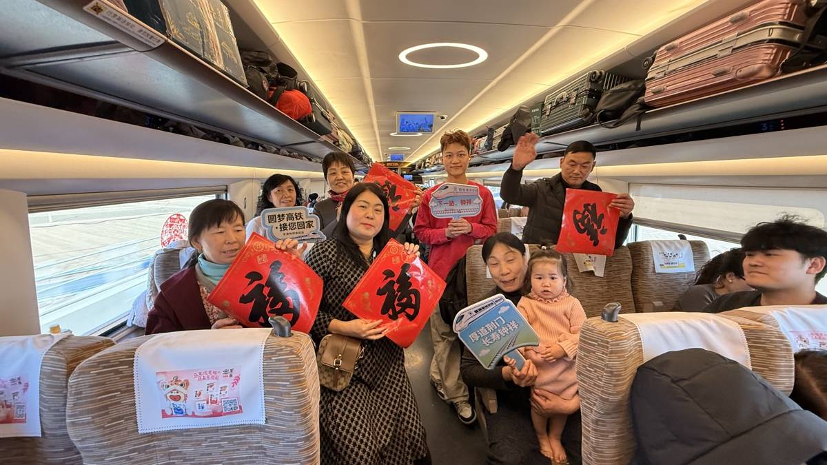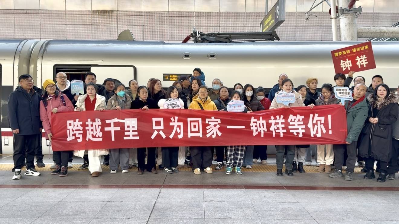 湖北日报讯(记者祝华、通讯员汪龙、李含嫣、肖蒙雨)2月8日下午,钟祥市2026年“圆梦高铁 接您回家”返乡专列G1515、G1032次列车分别从北京、深圳启程,搭载钟祥籍在外务工经商人员免费返乡。